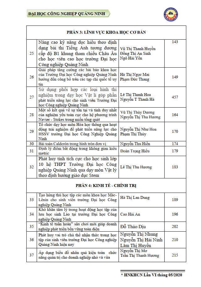 - Bản tin Khoa học và Công nghệ Trường Đại học Công nghiệp Quảng Ninh số 57 (02/06/2022)