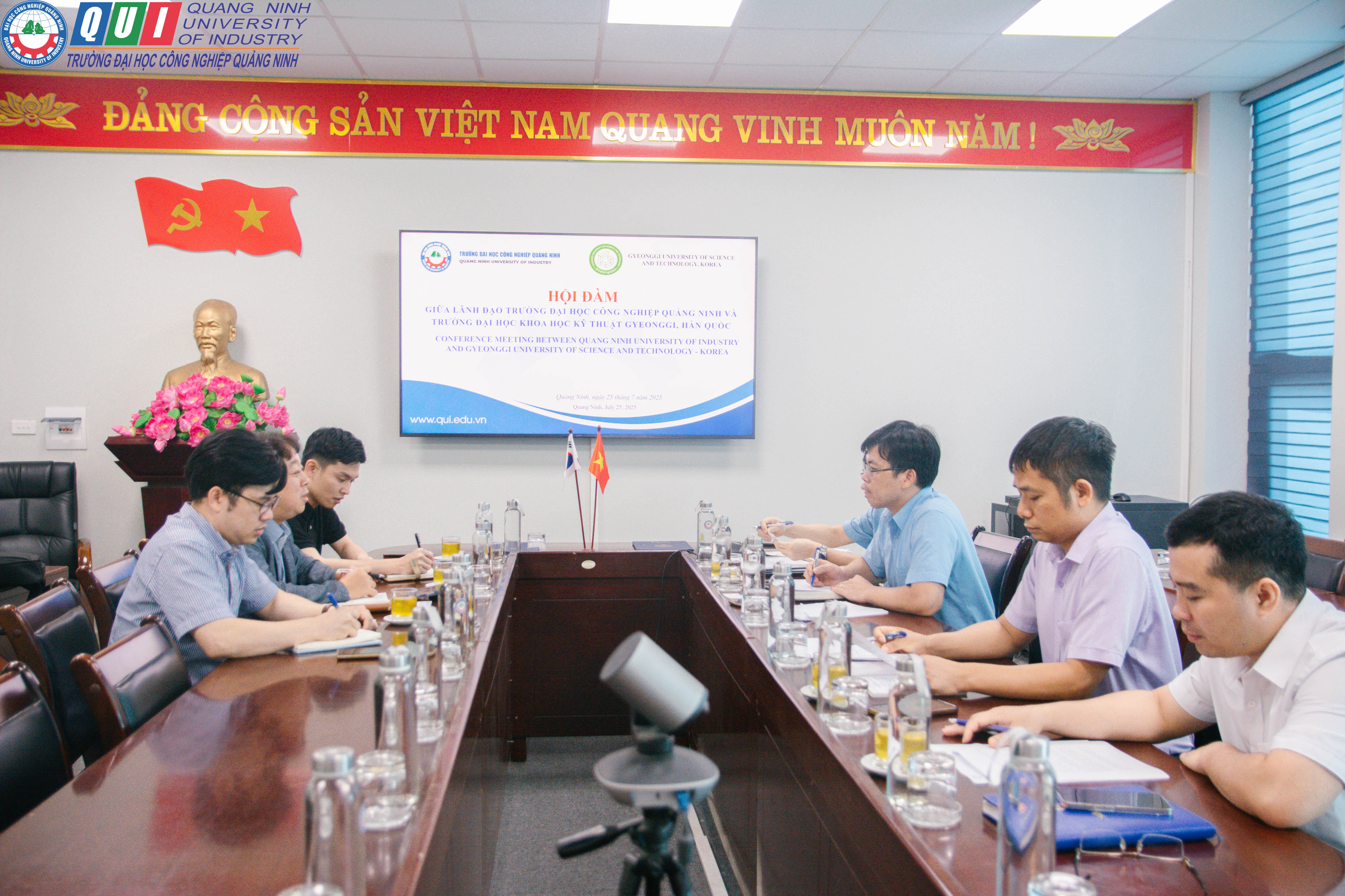 Ngày 25/7/2025, Trường Đại học Công nghiệp Quảng Ninh đã long trọng tổ chức buổi đón tiếp và làm việc với đoàn đại diện Trường Đại học Khoa học kỹ thuật Gyeonggi Hàn Quốc - một trong những cơ sở giáo dục uy tín của Hàn Quốc, chuyên đào tạo các lĩnh vực khoa học kỹ thuật phục vụ nhu cầu công nghiệp và ươm mầm tài năng kỹ thuật.