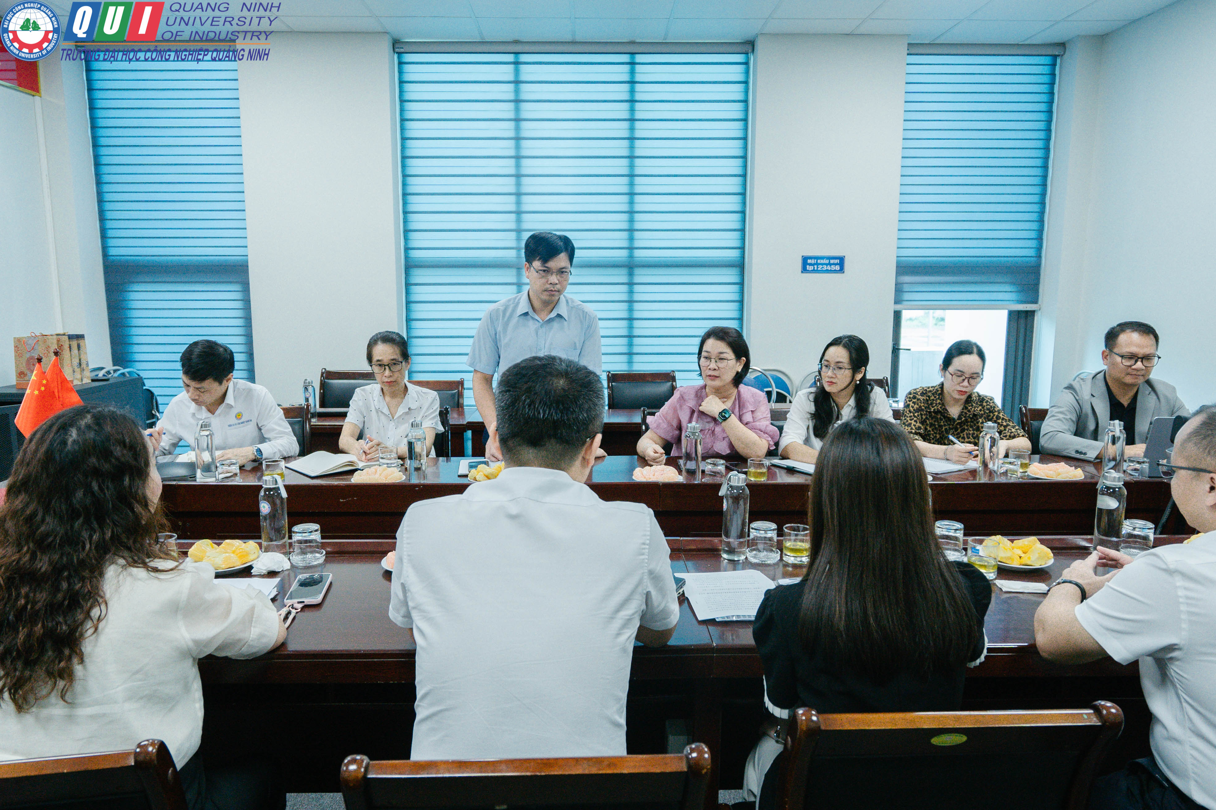Phát biểu tại buổi làm việc, TS. Phạm Đức Thang khẳng định:“Trường Đại học Công nghiệp Quảng Ninh luôn coi trọng và thúc đẩy quan hệ hợp tác quốc tế, đặc biệt với các trường đại học có nền tảng vững chắc về kỹ thuật như Học viện Kỹ sư Nhị Khánh Quảng Tây- Trung Quốc. Chúng tôi mong muốn xây dựng mối quan hệ lâu dài, bền vững và thiết thực với quý trường.”