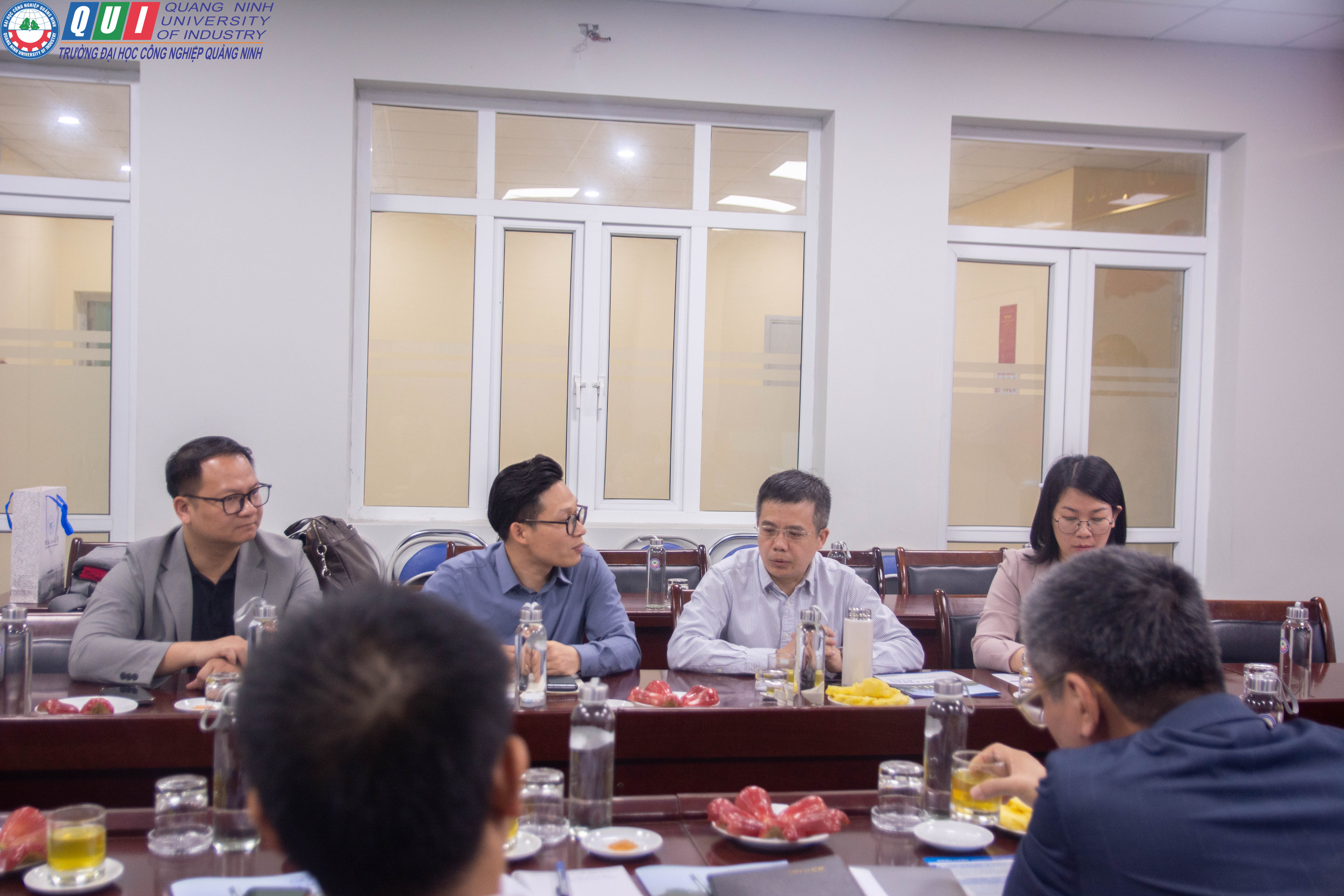 Phát biểu tại buổi làm việc TS. Hoàng Hùng Thắng - Bí thư Đảng ủy, Hiệu trưởng Nhà trường đã chia sẻ về cơ sở vật chất, đội ngũ sư phạm, ngành nghề đào tạo của Nhà trường cũng như những đóng góp của Nhà trường trong đào tạo đội ngũ cán bộ kỹ thuật để phát triển kinh tế xã hội tỉnh Quảng Ninh nói riêng cũng như cả vùng Đông Bắc. Trường Đại học Công nghiệp Quảng Ninh rất vui mừng đón tiếp các đại biểu trường Đại học Bách Khoa Quế Lâm đến thăm và làm việc với trường. Đây là cơ hội để hai trường giới thiệu, trao đổi và chia sẻ những thông tin chung, tầm nhìn và định hướng trong tương lai cũng như những thành tựu của hai trường trong mối quan hệ hợp tác quốc tế tốt đẹp với các đối tác trong khu vực và toàn thế giới.