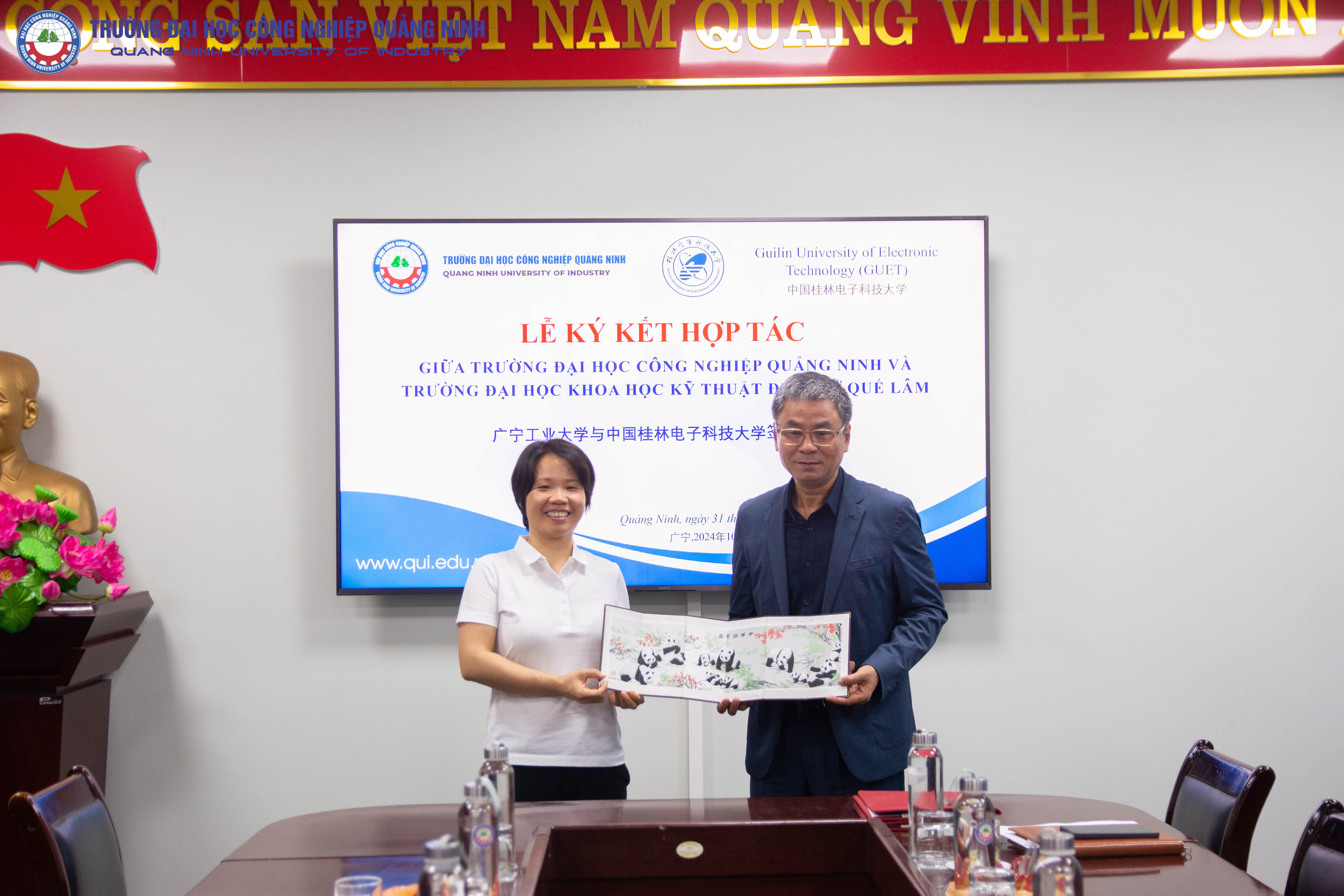 Đại diện trường ĐH KHKT Điện tử Quế Lâm tặng quà lưu niệm